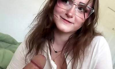 Horny Teen Gargles Cock and Passionately Wanks Off Cum on Tits