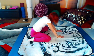 Hot milf doing Yoga in sexy red yoga trousers