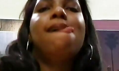 Charming, Caucasian brunette is sucking a big, black pecker as deep as she can guzzle it