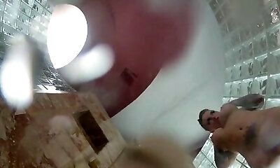 Hairy brunette Beryl Aspen strips while she cleans to showcase off her huge bootie