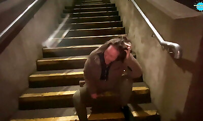 Walking round the streets with jizz whilst pissing