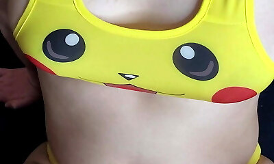 Hot French gal doing Pikachu cosplay getting pounded