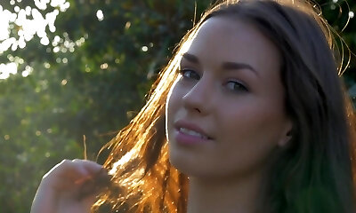 Delectable college lady poses seductively for an glamour outdoors solo shoot