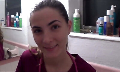 Amazing stripping nurse named Hannah Z flashes her nice culo