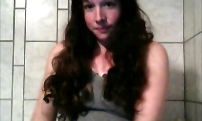 Long haired black head with ugly saggy pale titties was masturbating on webcam