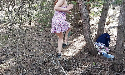 Redhead sweetie goes outdoors only to have fun around with her private parts