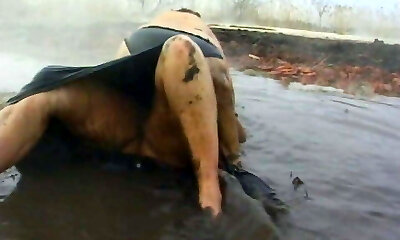 A super busty German brunette gets her cootchie hammered outdoors