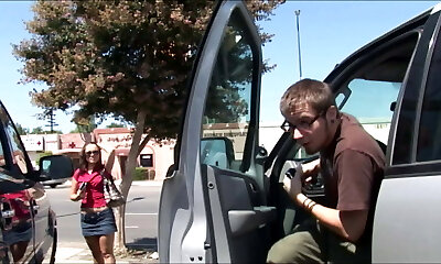 Sexiest blonde teen having her first penetration inside the car