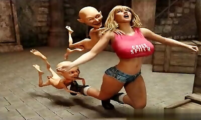 Two funny goblins catch big-boobed blonde