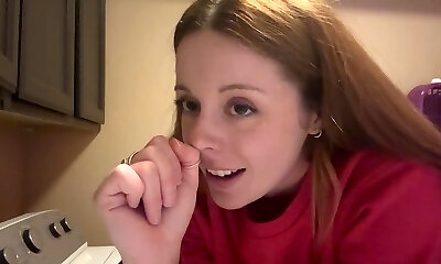Slim Small-titted Ginger-haired Rides the Corner Of a Dryer To Please Her Lusty Itching Pussy