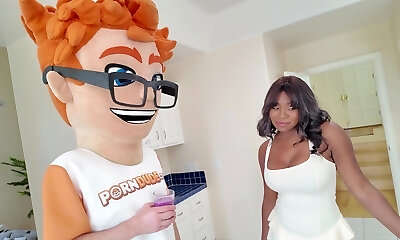 FAKEhub - Ebony Mystique finds housemate nuzzling her dirty underpants before giving him her big ass and gigantic tits