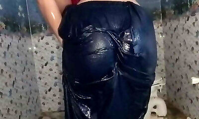 Really bushy female that is pregnant takes a bath