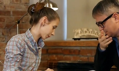 Pervy tutor finishes off in his skinny student !