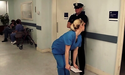 Helpful Chinese nurse bj's and rubs a dick at her work place