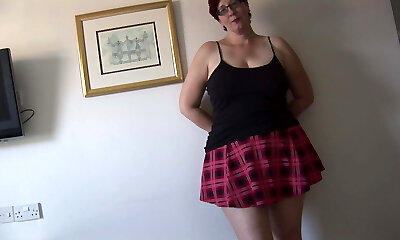 Mature English lady in slip and pantyhose strips and teases